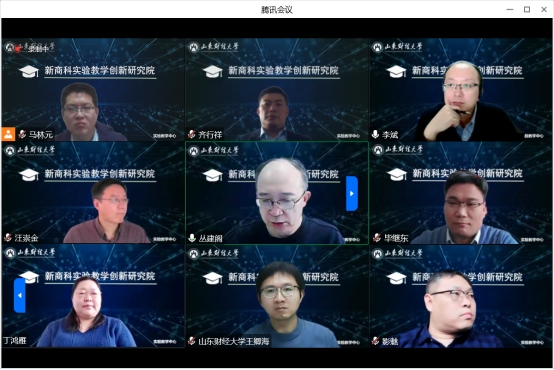 2022年11月11日下午,实验教学中心组织召开了山东财经大学新商科实验教学创新研究院(以下简称“研究院”)成立仪式,会议以线上腾讯会议形式举办。实验教学中心领导班子全体成员、实验教学中心原主任丛建阁教授、相关部门负责人,以及工商管理学院毕继东、会计学院牛艳芳、金融学院王俊籽、国际经贸学院邬彩霞、财政税务学院汪崇金、经济学院齐行祥参加了会议。会议由实验教学中心主任李斌主持。