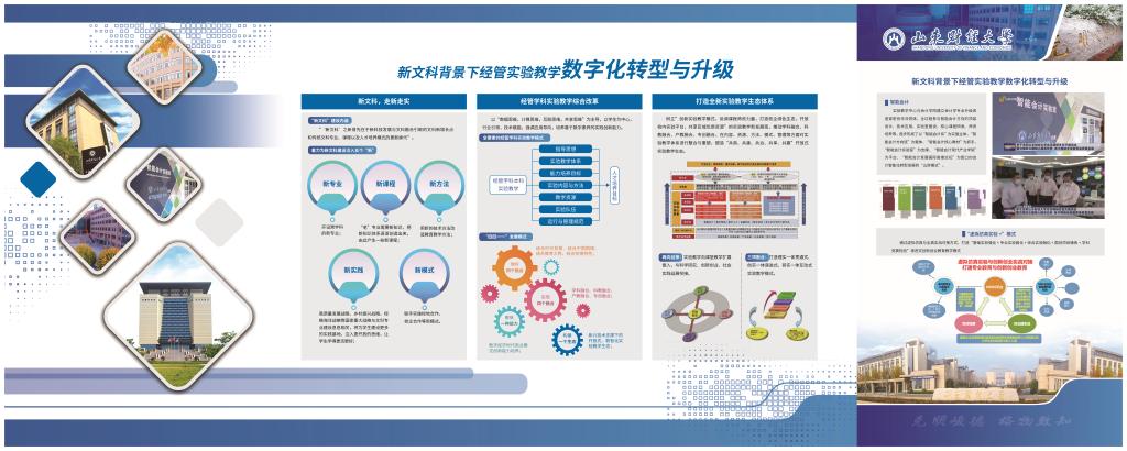 在山东专区展位上,我校以图文展板和视频播放相结合方式展示了近年来推动一流本科专业建设和一流本科课程建设方面的成就。中心参展内容以“新文科背景下经管实验教学数字化转型和升级”为主题,从新文科背景下的五新建设、全要素实验教学模式、全新实验教学生态体系、实验教学课程亮点四个方面全面展示了我校实验教学改革与创新成果特色。展示内容吸引了众多教育同行关注和咨询。