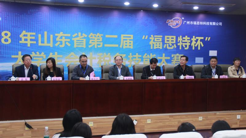 10月26日,山东省第二届“福思特杯”大学生会计税务技能大赛在我校舜耕校区隆重举行,比赛由山东省教育厅高教处主办,我校财税学院、会计学院和实验教学中心联合承办,广州市福思特科技有限公司提供技术支持。我校教务处陶虎处长、会计学院王爱国院长、财税学院谢申祥院长、实验教学中心宫锡强副主任以及广州市福思特科技有限公司董事长闫晓霞等和来自全省56所高校的68支队伍、500多名师生参加了开幕式。