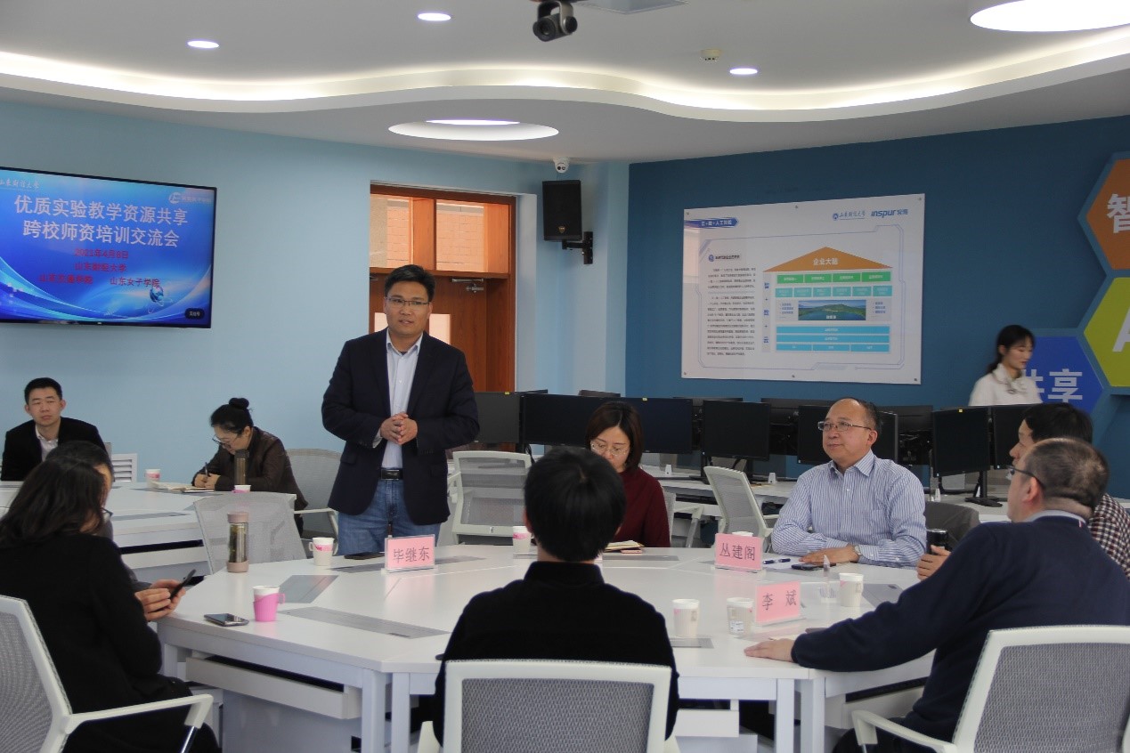 2021年4月8日,实验教学中心在燕山校区举办了第三期优质实验资源共享跨校师资培训交流会。山东交通学院经济管理学院副院长聂云霞、山东女子学院工商管理学院副院长秦善勇一行共17人来访,工商管理学院毕继东、葛培波、夏兆敏老师,中心主任丛建阁、副主任李斌、主任助理王卿海及办公室主任王志、教务部主任李建辉参加会议。