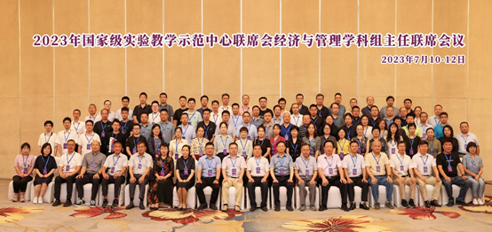 7月11日,2023年高等学校国家级实验教学示范中心联席会经济与管理学科组主任联席会议在天津举行。会议由南开大学承办,以“数字转型 引领创新”为研讨主题。与会人员包括高等学校国家级实验教学示范中心联席会领导、经济与管理学科组领导和专家、特邀嘉宾、高等学校经济管理类国家级实验教学示范中心和国家级虚拟仿真实验教学中心负责人及成员等。我中心一行6人应邀参会。